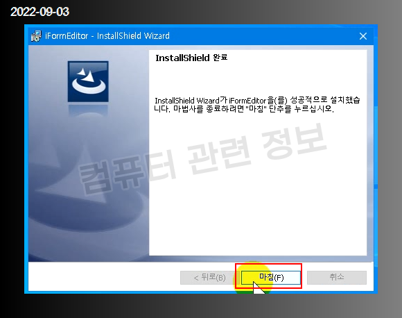 프로그램 설치가 완료되었습니다. 마침 클릭.