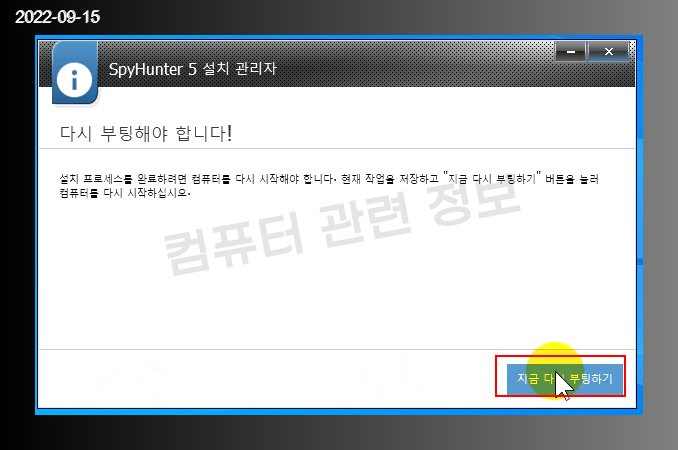 프로그램이 제거되었습니다. 지금 다시 부팅하기를 클릭하세요.