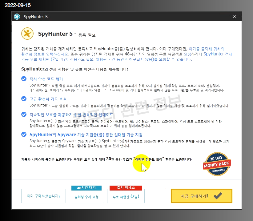 이 프로그램은 제품등록이 필요한 유료제품입니다. (프로그램 설치 및 시스템 검사만 무료)
