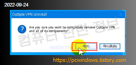 프로그램을 삭제할건지 물어보는데 예 클릭.
