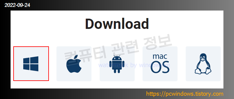 위 링크로 이동해서 윈도우즈용으로 다운로드 받으세요. IOS, 안드로이드, 맥, 리눅스용 프로그램도 지원합니다.