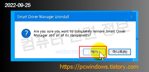 프로그램이 성공적으로 삭제되었습니다. 확인 클릭.