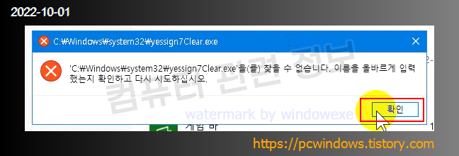 C:\Windows\system32\yessign7Clear.exe 파일을 찾을 수 없다고 나옵니다. 확인 클릭.