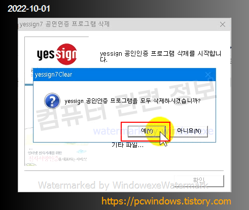 프로그램을 삭제할건지 물어보는데 예 클릭.