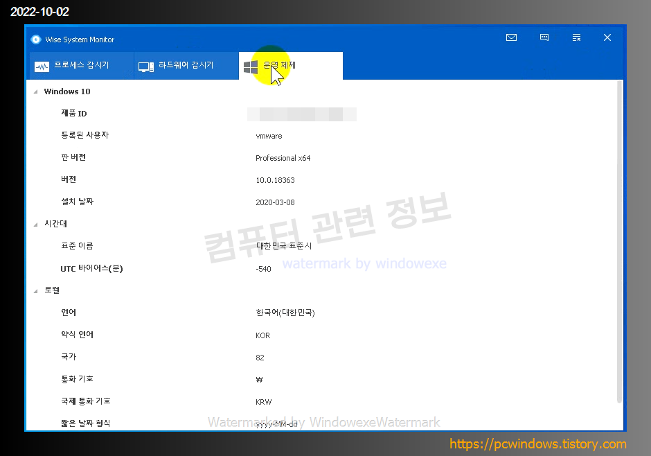 운영체제 정보 탭.