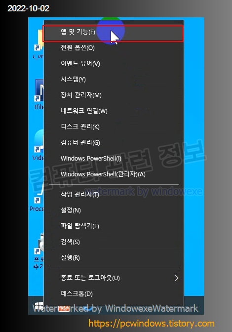시작 메뉴 - 우클릭 - 앱 및 기능 실행.
