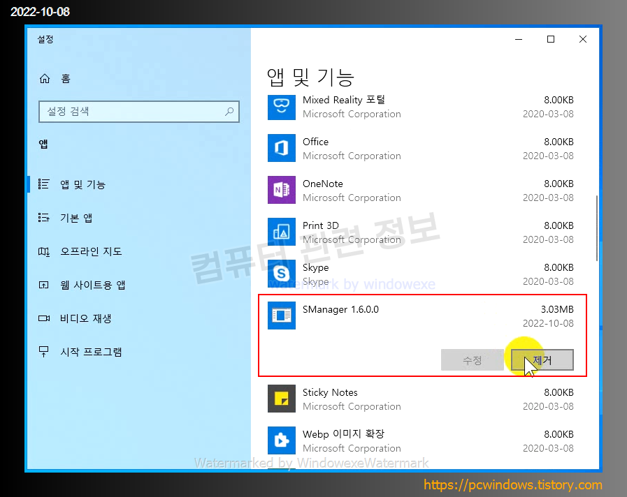SManager 1.6.0.0 프로그램도 같이 설치가 되는데 제거 클릭.