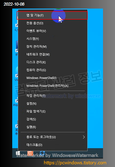 시작 - 우클릭 - 앱 및 기능 실행.
