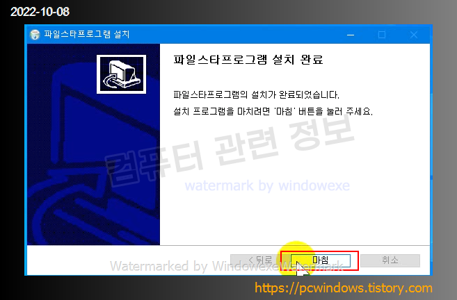 별다른 메세지 없이 자동으로 설치됩니다. 마침 클릭.