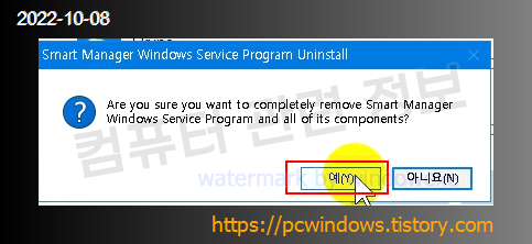 스마트매니저 블라블라 제거 확인 메세지, 예 클릭.
