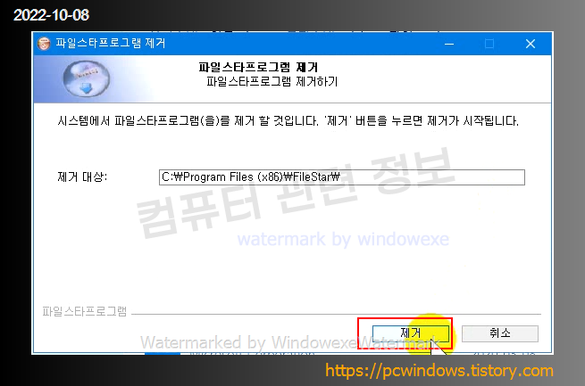 파일x타 프로그램을 제거합니다. 제거 클릭.