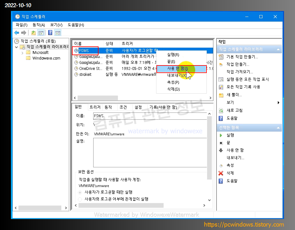 시작 - 검색에서 [작업 스케쥴러] 를 검색해서 실행하세요.