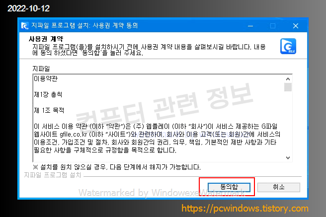 동의함 클릭.