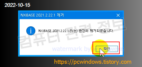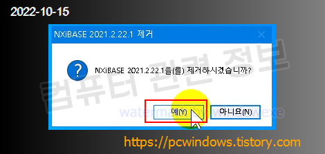 NXiBASE 2021.2.22.1 제거 클릭.