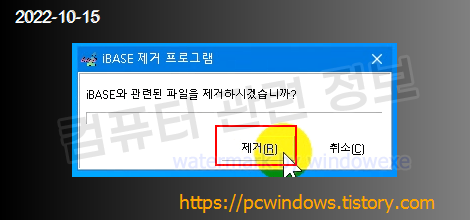 iBASE - 쿠콘 정보제공 엔진 v2.0 제거 클릭.