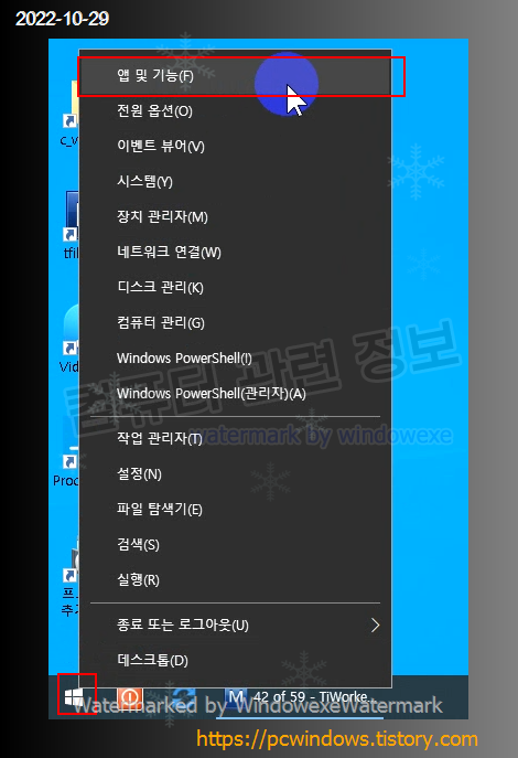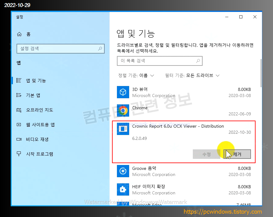 시작 - 우클릭 - 앱 및 기능 실행.