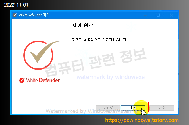 프로그램이 성공적으로 제거되었습니다. 마침을 클릭하세요.