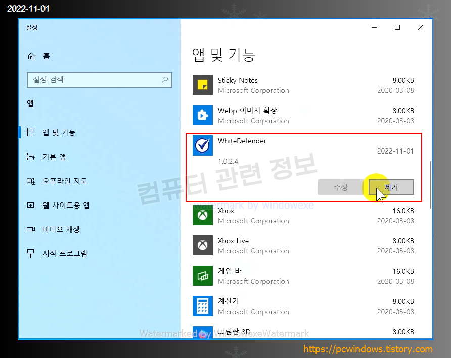 WhiteDefender 프로그램을 제거하는 방법입니다.