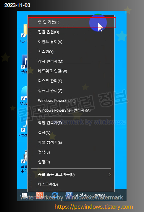 시작 - 우클릭 - 앱 및 기능을 실행하세요.