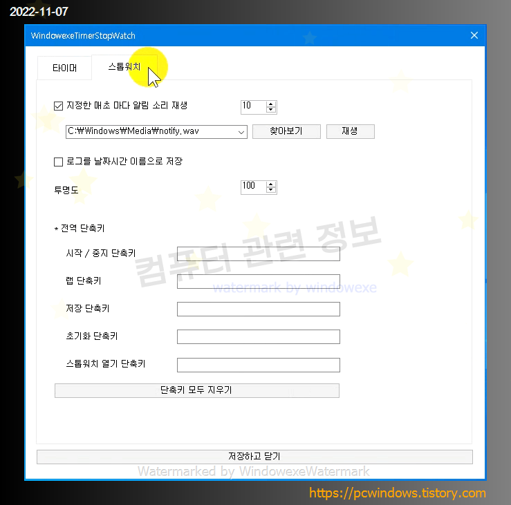 시계앱이나 웹브라우저를 이용하는 경우는 단축키 사용이 안되서 불편하고, 매번 앱을 실행하거나 활성화하는 것도 귀찮아지거든요.