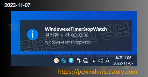 작업표시줄 오른쪽 시스템 트레이에 시계 모양의 아이콘이 생깁니다.