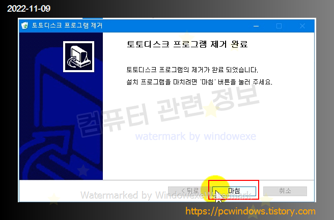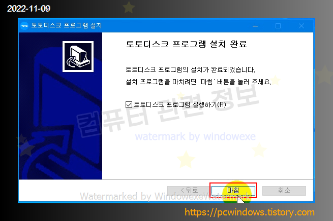 프로그램 설치가 완료되었습니다. 마침 클릭.