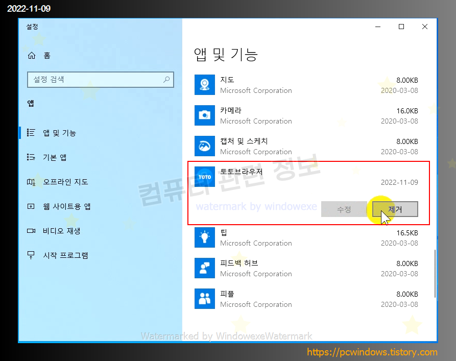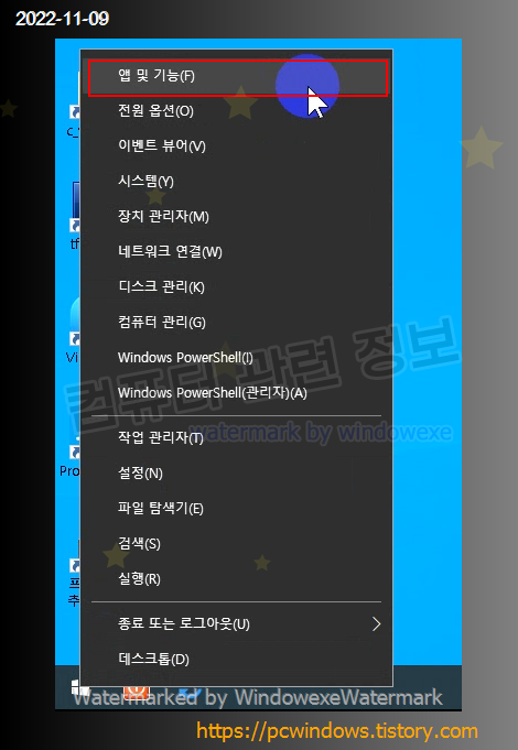 시작 - 우클릭 - 앱 및 기능 클릭.