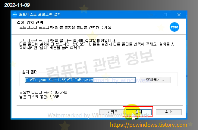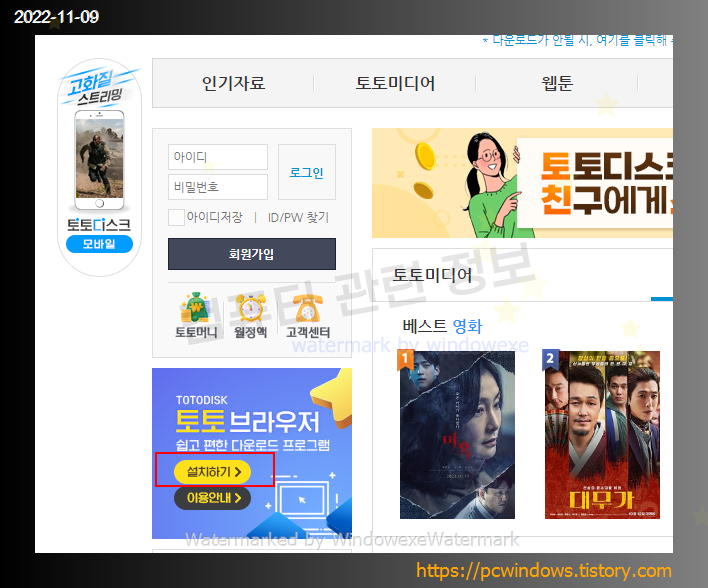 메인화면 왼쪽 중간에 토토 브라우저 설치하기 버튼 클릭.