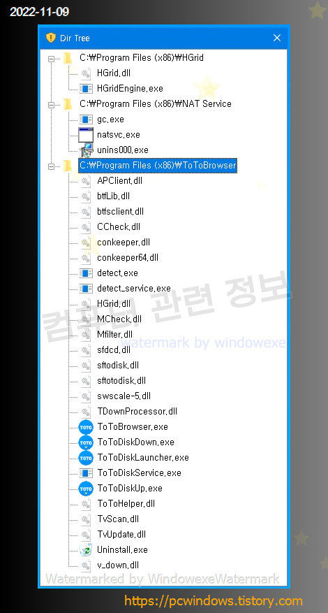 토토 브라우저 프로그램을 설치하면 생성되는 파일입니다. (전체 목록은 본문하단 상세정보 참고)
