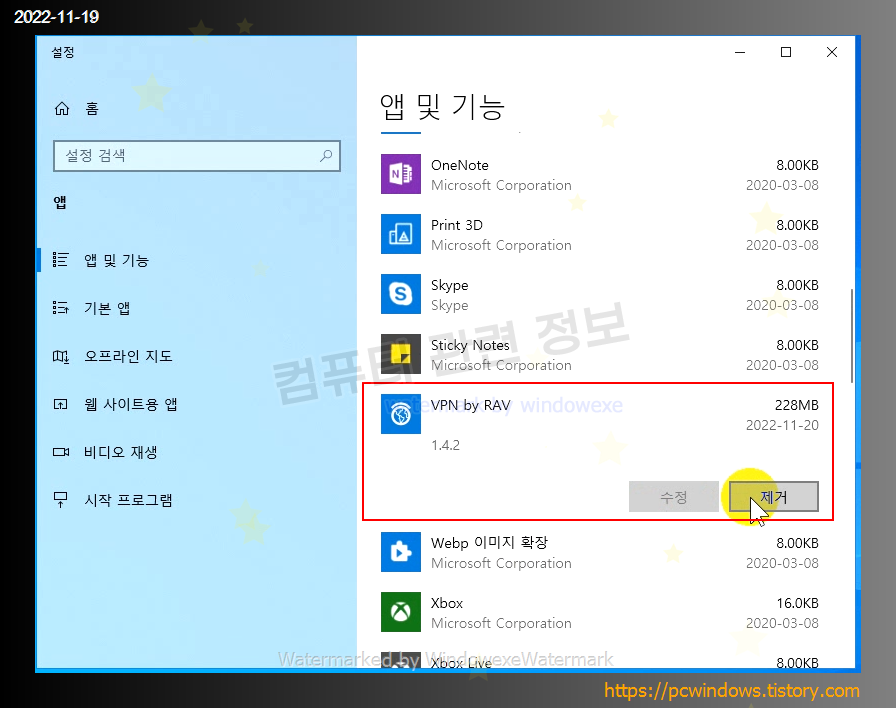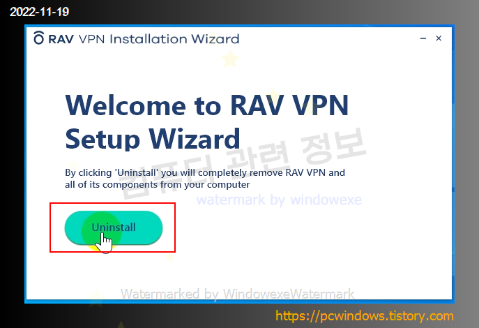 VPN by RAV 제거 클릭.
