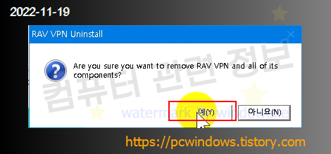 프로그램을 제거할건지 물어보는데 예 클릭.