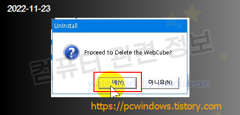 프로그램을 제거할건지 물어보는데요. 예를 클릭하세요.