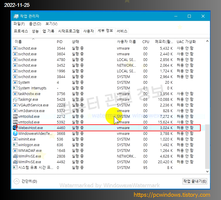 WebexHost.exe 프로세스는 부팅시마다 자동으로 실행이 됩니다.