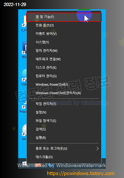 시작 버튼 - 마우스 우클릭 - 앱 및 기능 실행.