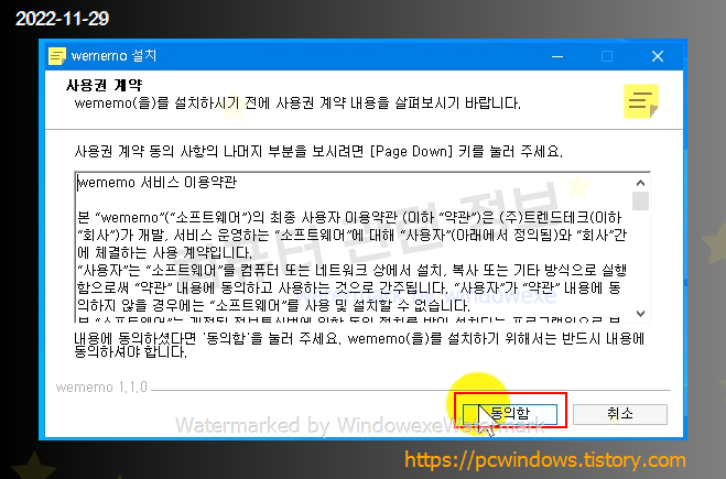 프로그램 설치하기, 동의함 클릭.
