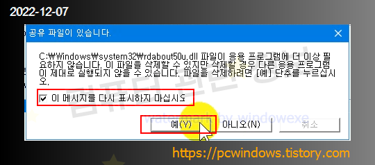 공유된 파일이 있어서 삭제 확인 메세지가 나오는데요. 체크하고 예 클릭.