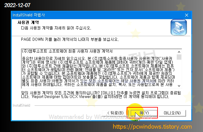 사용권 계약 내용이 나오는데 예 클릭.