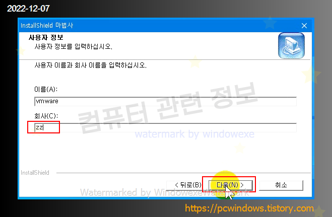 다음 클릭. (회사 이름은 필수 입력)