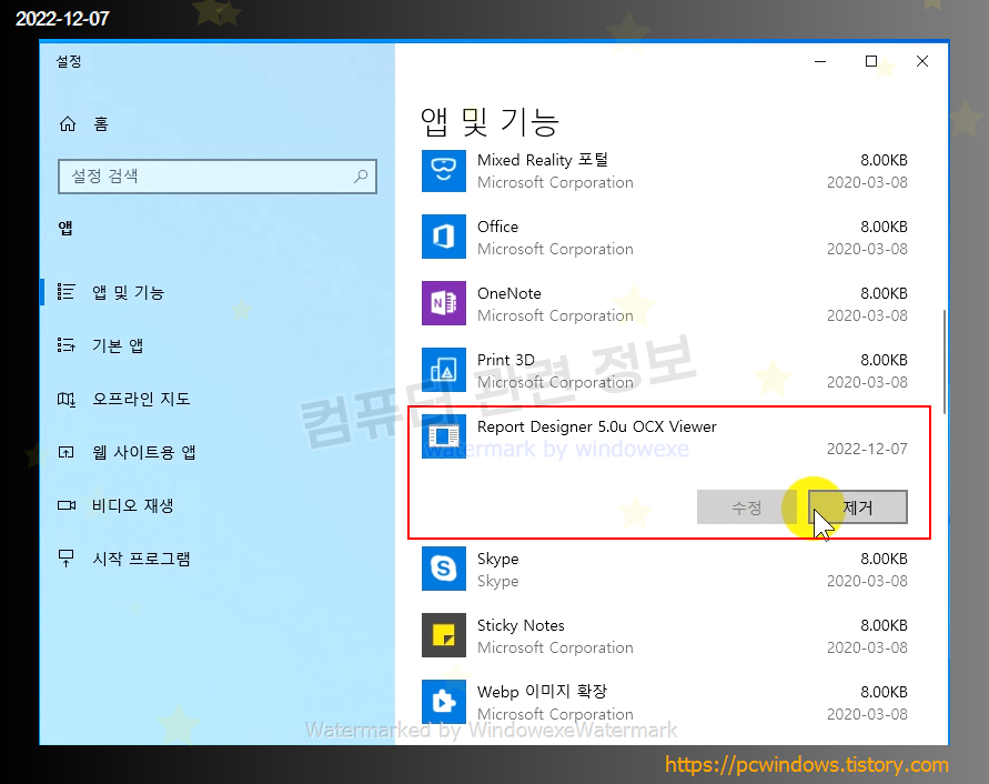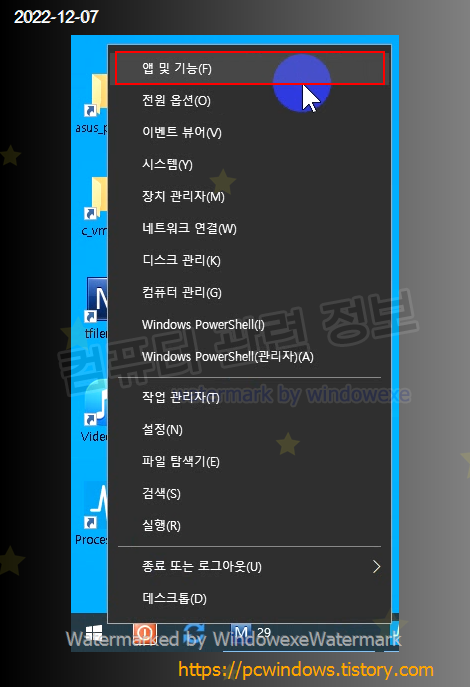 시작 - 우클릭 - 앱 및 기능 실행.