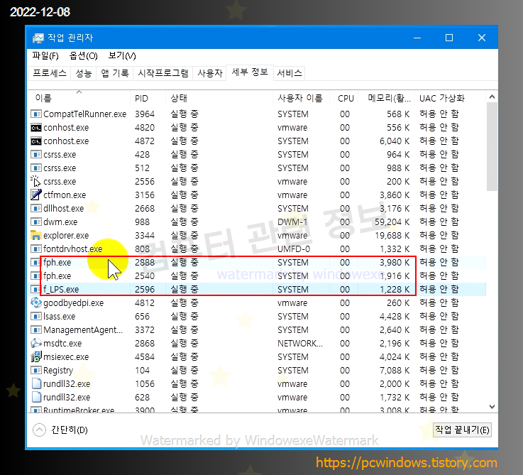 fph.exe , f_LPS.exe 프로세스는 부팅시마다 자동으로 실행이 되는데, 이놈들은 안전모드로 부팅해도 실행됩니다.