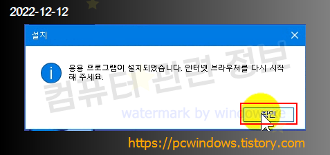 프로그램 설치가 완료되었습니다. 확인 클릭.