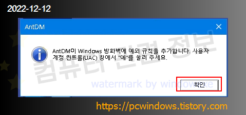 사용자 계정 컨트롤 메세지가 나오면 예를 클릭하세요.