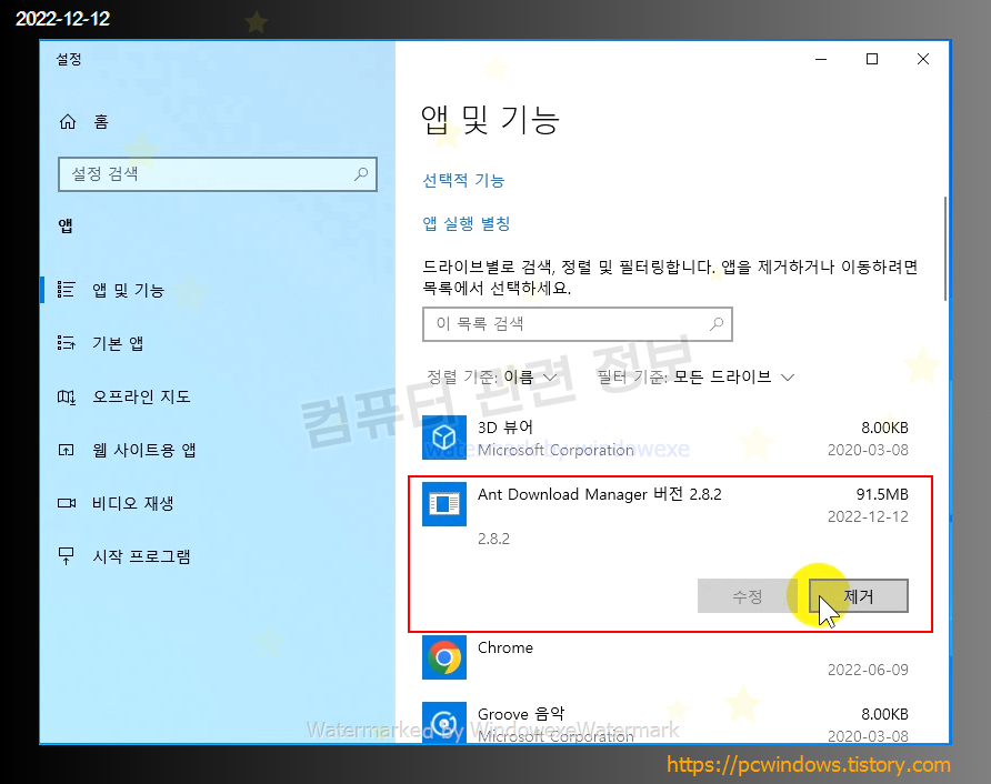 프로그램을 제거하는 방법입니다.
