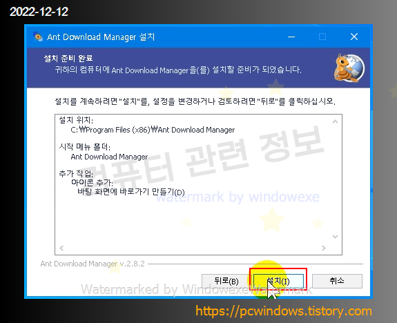 설치 클릭.