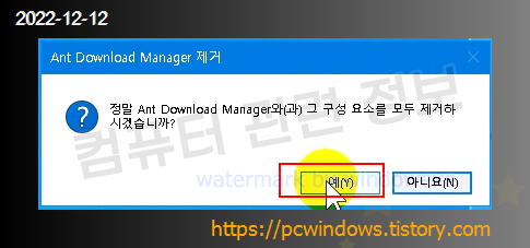 프로그램을 삭제할건지 물어보는데 예 클릭.