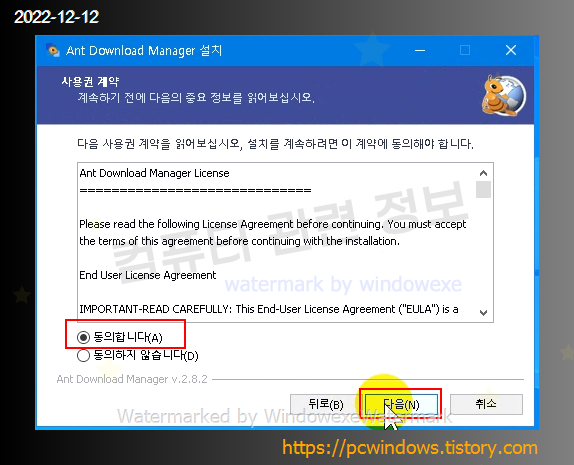 동의함에 체크하고 다음 클릭.