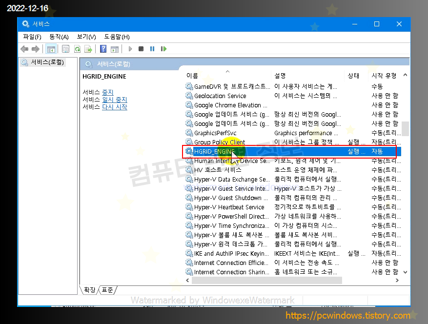 HGRID_ENGINE 을 찾아서 더블클릭.