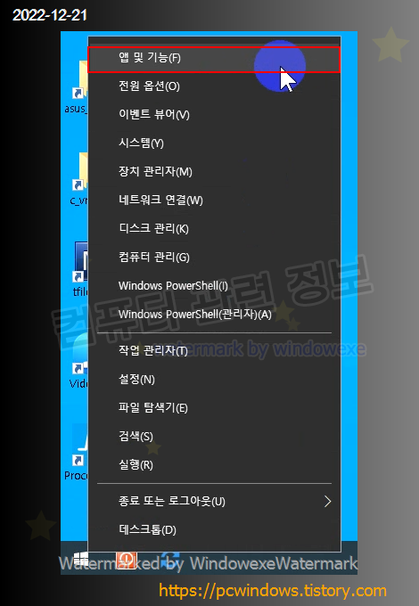 시작 - 우클릭 - 앱 및 기능 실행.