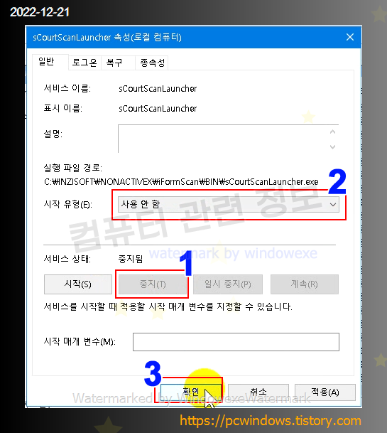 자동 실행 서비스 중지시키는 방법