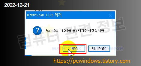 프로그램을 삭제할건지 물어보는데 예 클릭.